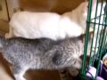 Update -- Oct 17, 2009 -- Charlie Hemingway been adopted!! Thank you John & Jessica!! For those of you who were searching for a white kitten, please be advised that Or Co Animal Services often has white kittens available for immediate adoption ... if interested please contact them soon as white kittens go fast!! You can check to see what kittens are currently there by visiting www.ocnetpets.com Charlie -- pure white blue-eyed hemingway neutered male kitten approx birth date May 1st. I am gorgeous with my pure white coat and brilliant blue eyes ... and as if that wasn't enough I'm also a Hemingway kitten with 2 extra toes on both of my front feet!! And unusual looks aside, just my personality would win you over! I am a sweetheart with both people and other cats & kittens. A little shy around new people and in new surroundings, but also very laid back. Just the 2nd day after bringing me into her care, my foster mom turned me loose with a couple of other foster kittens and the little girl kitten formed an instant attraction to me and tagged along wherever I went(attached is a short video clip of this -- my foster mom was actually filming a mama cat with her 7 newborn kittens, and noticed me and my new friend out of the corner of her eye and took a quick clip of this ... you'll see me going up to Mama cat's cage, I am very curious about her and her babies, but Mama cat is very protective so I don't dare get too close!!). And I'm a major purrr baby, as soon as I see you I'll start purring even if you're not petting me. And if you pet me boy I really get my purr motor revving! I'm playful, but not as much as some of the other youngsters, I'm just as happy if you spend your time with me stroking me. As mentioned before, I get along very well with other kittens and cats, and I really would like another kitten or cat companion so I won't get bored or lonely when you're not around. I'm litterbox trained and don't scratch furniture, instead I like to stretch my front paws on a sisal twine scratching post and on the Turbo scratcher. I'm an indoor kitten and prefer to remain so, protected from hazards of the outdoors. And I'm so ready to go home with my new family! Please have another kitten or cat there to keep me company; if you don't have one already, perhaps you'll consider adopting one of my new kitten friends. Did you know two kittens are double the fun of one, and we're actually less effort as we help take care of each other. My adoption fee is only $40. Please email for more information. More about Charlie HemingwayGood with Cats Video of Charlie Hemingway: